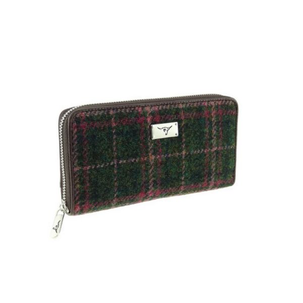 Glen Appin Harris Tweed Staffa Long Zip Purse in Green and Plum