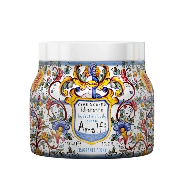Bodycream Amalfi Peony 450Ml is a luxurious body cream infused with the captivating fragrance of black fig and white rose. Its hydrating yet non-greasy formula is perfect for use after a warm bath or relaxing shower, absorbing quickly into the skin without leaving residue. This rich cream leaves your skin feeling soft, deeply moisturised, and radiant. Envelop yourself in an elegant floral scent that lingers beautifully throughout the day, featuring notes of white rose, neroli, and peach. Ideal for daily indulgence and all-over body hydration.