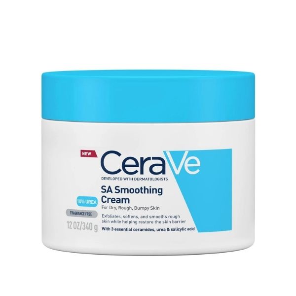 CeraVe SA Smoothing Cream is a dermatologist-developed, rich moisturiser designed to gently exfoliate and soften dry, rough, and bumpy skin. Formulated with 3 essential ceramides, salicylic acid, and 10% urea, it works to smooth and hydrate while maintaining the skin's natural barrier. The non-irritating, fragrance-free formula uses CeraVe’s patented MVE Technology to provide 24-hour hydration. Ideal for skin concerns like keratosis pilaris and psoriasis-prone skin, this cream absorbs quickly without leaving a greasy residue, making it suitable for daily use.
