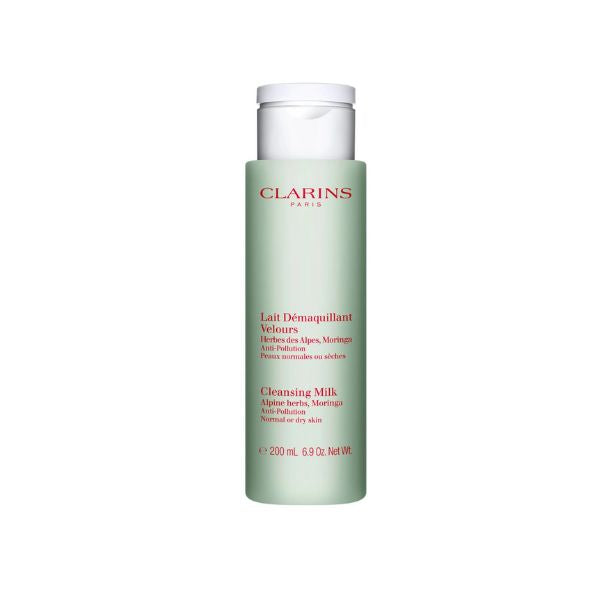 Clarins Cleansing Milk with Alpine Herbs and Moringa (200ml) is a gentle, botanical-based cleanser designed to effectively remove makeup and impurities while preserving the skin's natural moisture balance. Enriched with a blend of softening and toning plant extracts—including Alpine herbs, Moringa seed, St. John's Wort, Sweet Almond, Marshmallow, and Linden—it soothes and hydrates the skin, leaving it feeling soft, supple, and radiant. This creamy cleansing milk is suitable for normal to dry skin types and is formulated without parabens, sulfates, phthalates, volatile silicones, mineral oils, and silicones.