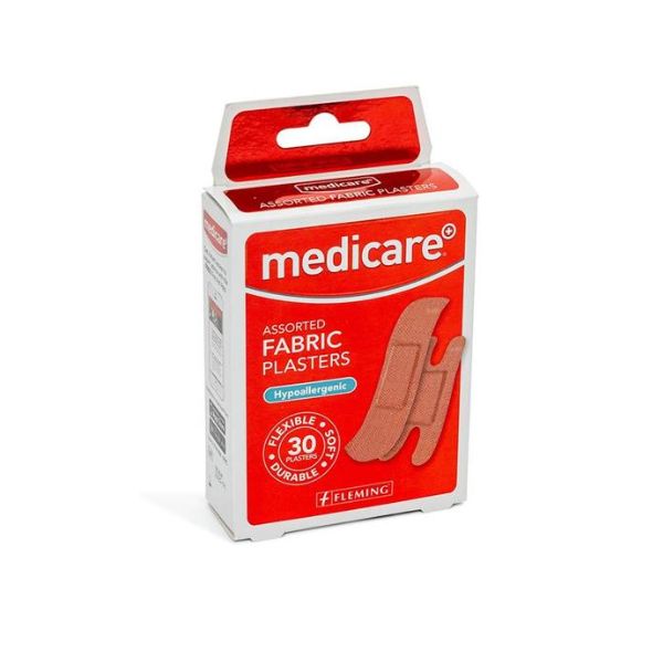 Medicare Fabric Assorted Plasters (30-Pack) are designed to provide comfortable and reliable protection for minor cuts, abrasions, and grazes. Made from soft, stretchable fabric, these plasters conform to body movements, ensuring flexibility and durability. The hypoallergenic adhesive is gentle on sensitive skin, reducing the risk of irritation. Each plaster features a non-stick, absorbent pad that prevents adherence to the wound, promoting optimal healing conditions. The pack includes a variety of sizes to cater to different wound types and locations: