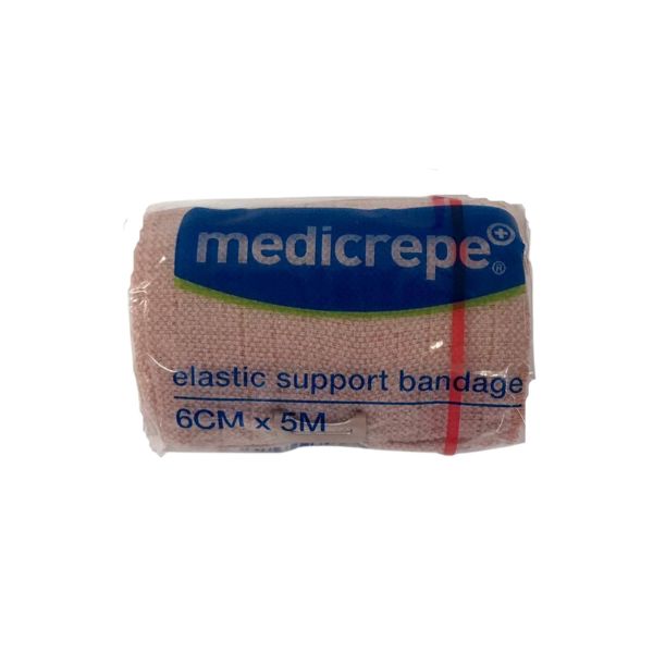 The Medicrepe Elastic Support Bandage 6cm x 5m is a versatile, high-stretch bandage designed to provide light support and compression for minor sprains, strains, and other injuries requiring gentle immobilization. Crafted from a blend of 50% cotton, 41% polyamide, and 9% polyurethane, this bandage offers durability and comfort. Its elastic properties allow it to conform easily to various body parts, ensuring effective compression and support. The bandage is lightweight and breathable, making it suitable for extended wear. It comes with special clips to secure the bandage once the desired level of compression has been achieved. Additionally, the bandage features a unique yellow guideline to facilitate correct overlapping and alignment, ensuring even compression.