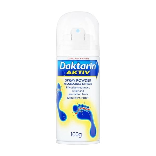 Daktarin Aktiv Spray Powder 100g is an antifungal treatment specifically formulated to treat and prevent athlete’s foot and fungal infections in areas prone to sweating, such as feet and socks. It contains miconazole nitrate, which works by destroying fungi and bacteria that cause infection and unpleasant odours. The spray format allows for easy, hygienic application, especially between the toes and on hard-to-reach areas. It absorbs moisture, keeps feet dry, and provides long-lasting freshness while relieving itching and discomfort. Ideal for daily use to help prevent reinfection.