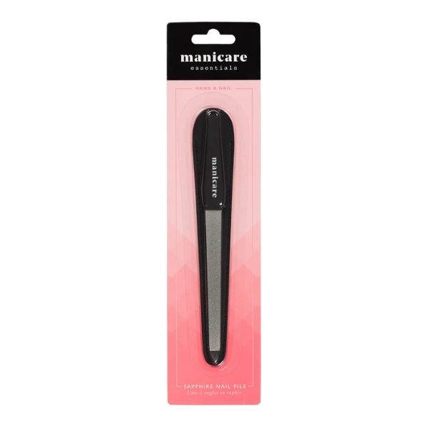 The Manicare Sapphire Nail File is a professional-grade, sapphire-coated emery board designed for both manicures and pedicures at home or on the go. Featuring a double-sided design, it includes a coarse grit for shaping and a fine grit for smoothing natural and artificial nails, making it ideal for all your nail styling needs.