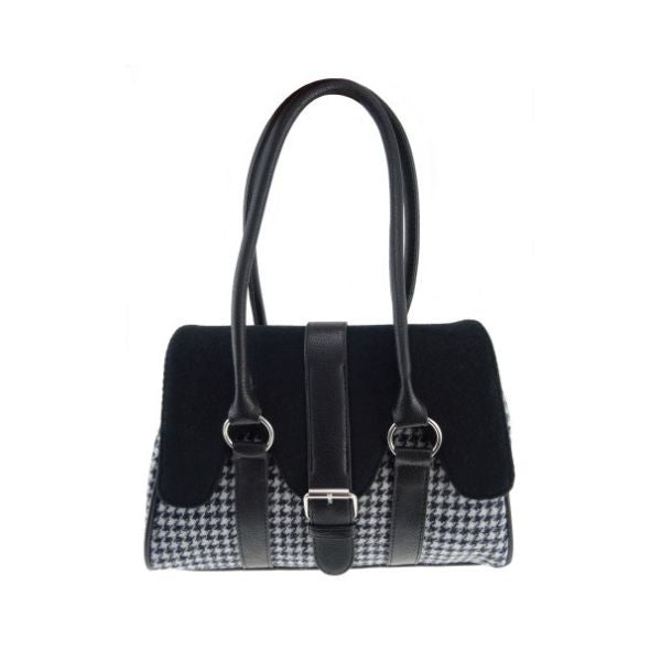 Glen Appin Harris Tweed Scallop Bag- Orchy Contrast Black