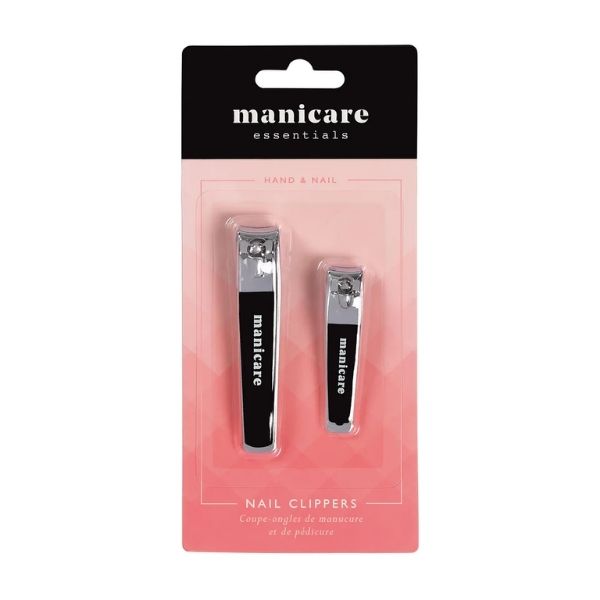 The Manicare Nail Clippers Black Duo Pack includes two heavy-duty stainless steel nail clippers designed for both fingernails and toenails. The pack features a large clipper, ideal for trimming tough toenails, and a smaller clipper for detailed fingernail grooming. Each clipper is engineered with a precision blade for accurate cutting, ensuring a smooth, clean finish every time.